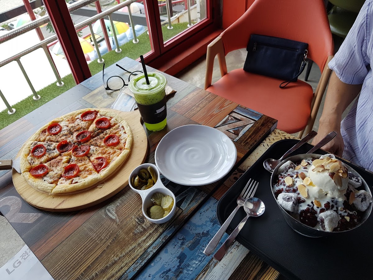 The menu features an enticing selection, with popularity leaning towards their expertly crafted coffees and delightful pizzas. Imagine pairing a slice of freshly baked pizza with a refreshing 청포도 에이드—perfectly balanced and not overly sweet, it’s a harmonious accompaniment to any meal. Other menu highlights include the well-loved 칠리소세지 빵, which tantalizes your palate with a savory kick that’s hard to resist. Customers have remarked on the delightful experience of enjoying flavorful meals against the backdrop of a mesmerizing sunset, especially during the evenings when the night views are a sight to behold.